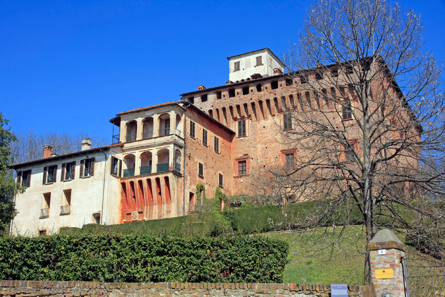 Nella rocca egli aveva trasportato cimeli, armi, oggetti e ricordi della sua vita avventurosa in Egitto e nell'India, degli ultimi Mogul. La raccolta è andata per la gran parte suddivisa e dispersa per eredità nel corso di questo secolo, mentre la rocca appartiene tuttora al Marchese Solaroli. Il castello si presenta oggi abbastanza integro, anche se nel corso dei secoli fu riadattato ed è tuttora abitato. Con tutta probabilità l'attuale fabbricato fu eretto verso la fine del XV secolo da Manfredo I, dopo l'assalto di Lodovico il Moro. Furono in parte sfruttati i muri antecedenti, le cui bifore ad arco acuto, otturate, sono ancora visibili. La sistemazione fu decisiva e grandiosa, unitaria e geniale nell'impianto. Il castello è un quadrilatero pressoché perfetto; racchiude al suo interno un cortile pensile quadrato, con pavimento all'altezza del primo piano, sorretto da volte a crociera impostate su un pilastro centrale. Al piano inferiore viene a crearsi una grande sala, posta tra il cortile coperto, la sala capitolare e la cripta, di enormi proporzioni. Il cortile superiore era un tempo circondato da una balconata lignea.