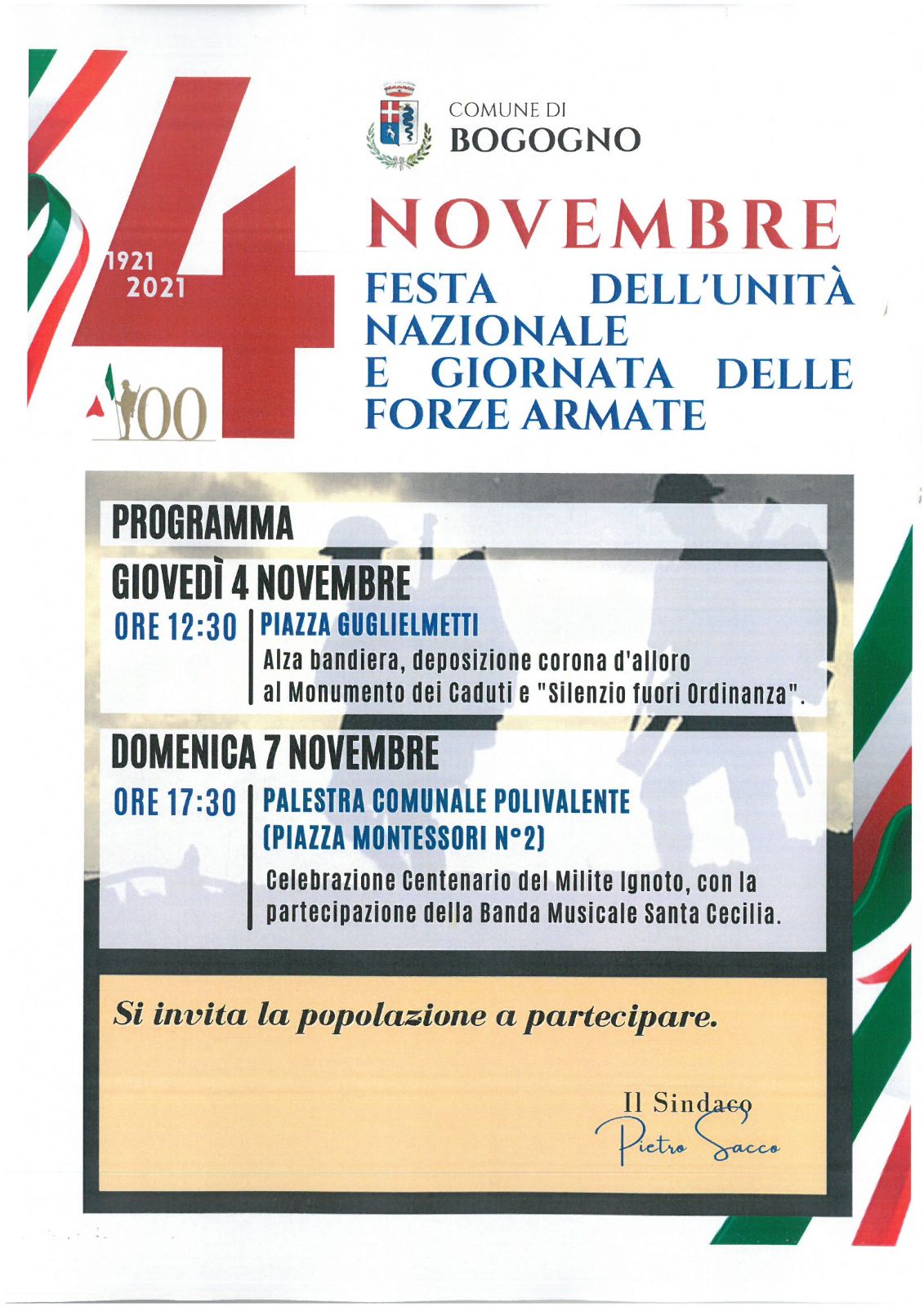 4 NOVEMBRE - FESTA DELL'UNITÀ NAZIONALE E GIORNATA DELLE FORZE ARMATE
