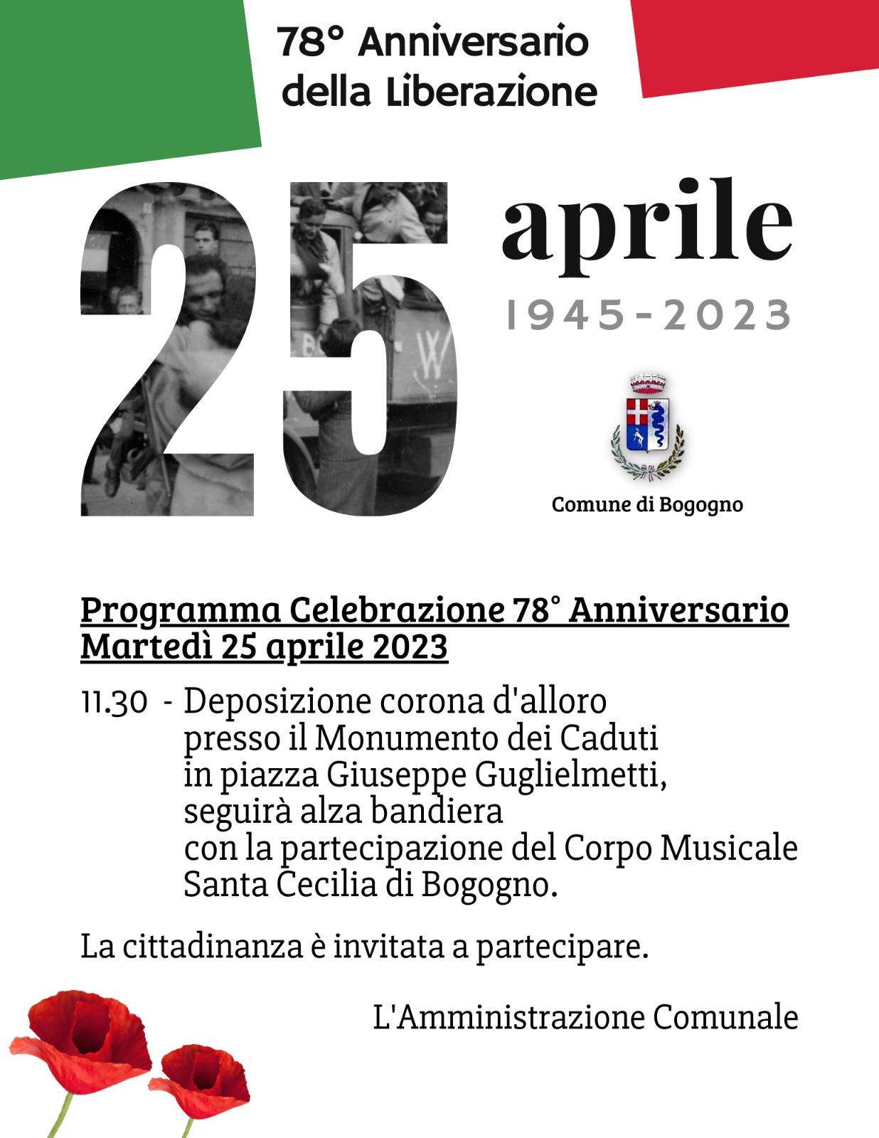 25 aprile 2023, ore 11,30, presso il Monumento dei caduti, piazza Giuseppe Guglielmetti.