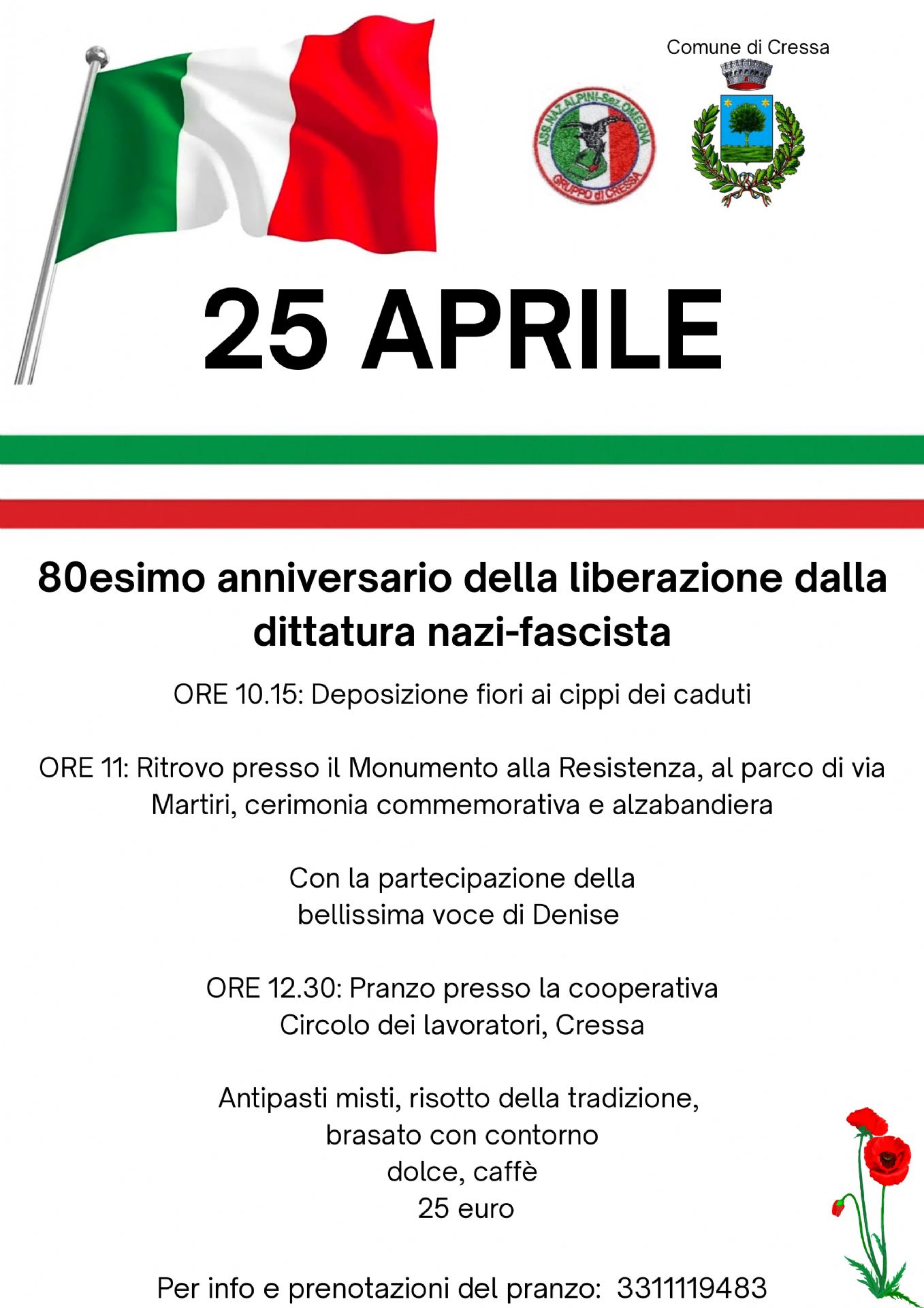 La partecipazione alla Manifestazione del 25 Aprile è gratuita.