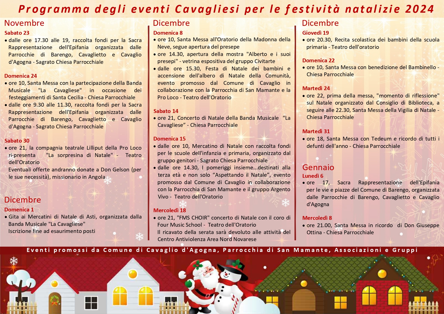 Programma degli eventi Cavagliesi per le festività natalizie 2024