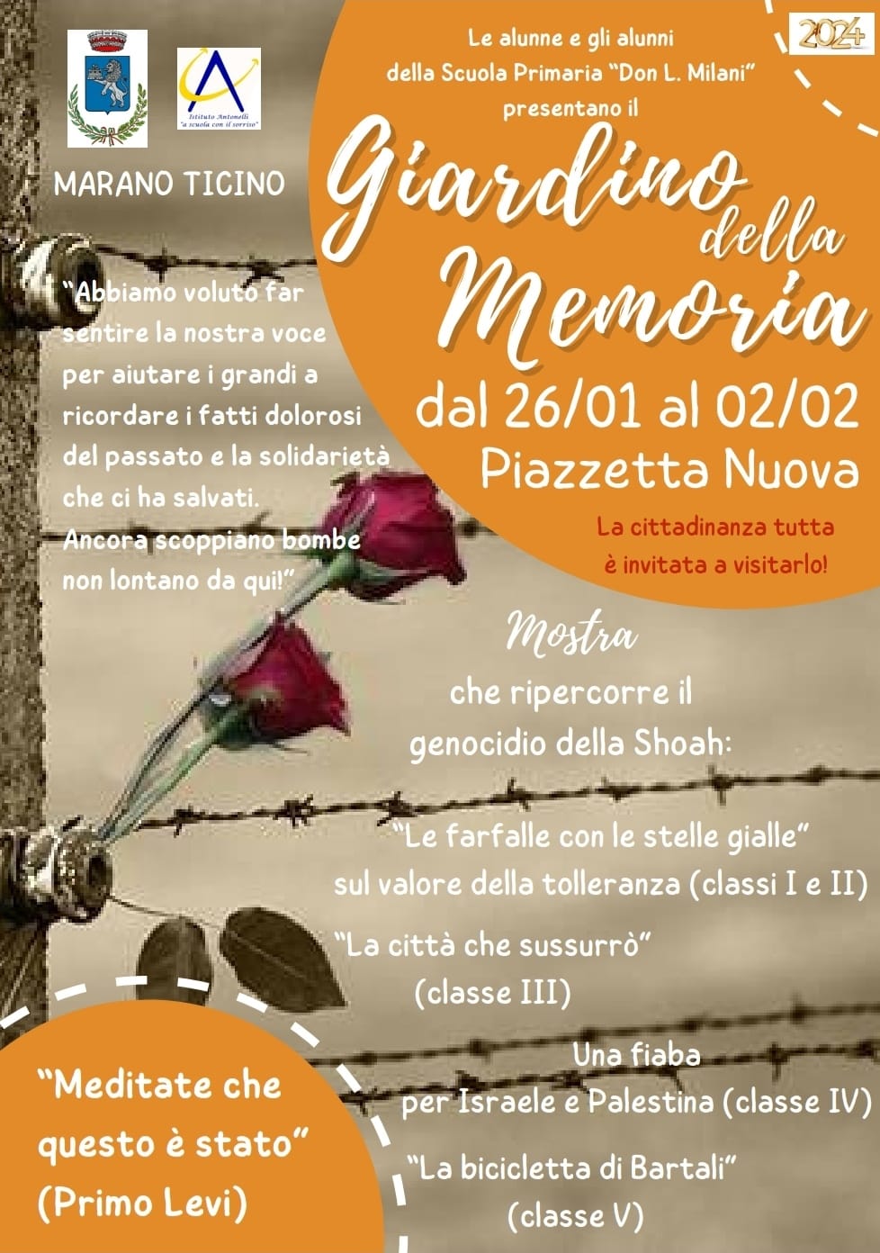 Le alunne e gli alunni della Scuola Primaria "Don L. Milani" presentano il Giardino della Memoria dal 26/01 al 02/02 in Piazzetta Nuova.