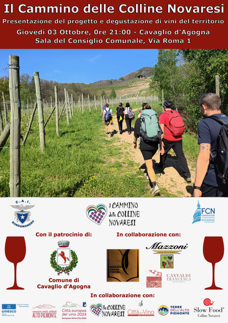 La serata sarà organizzata dal C.A.I. di Borgomanero (NO) con la collaborazione di associazioni, enti e aziende vitivinicole del territorio come da locandina allegata.