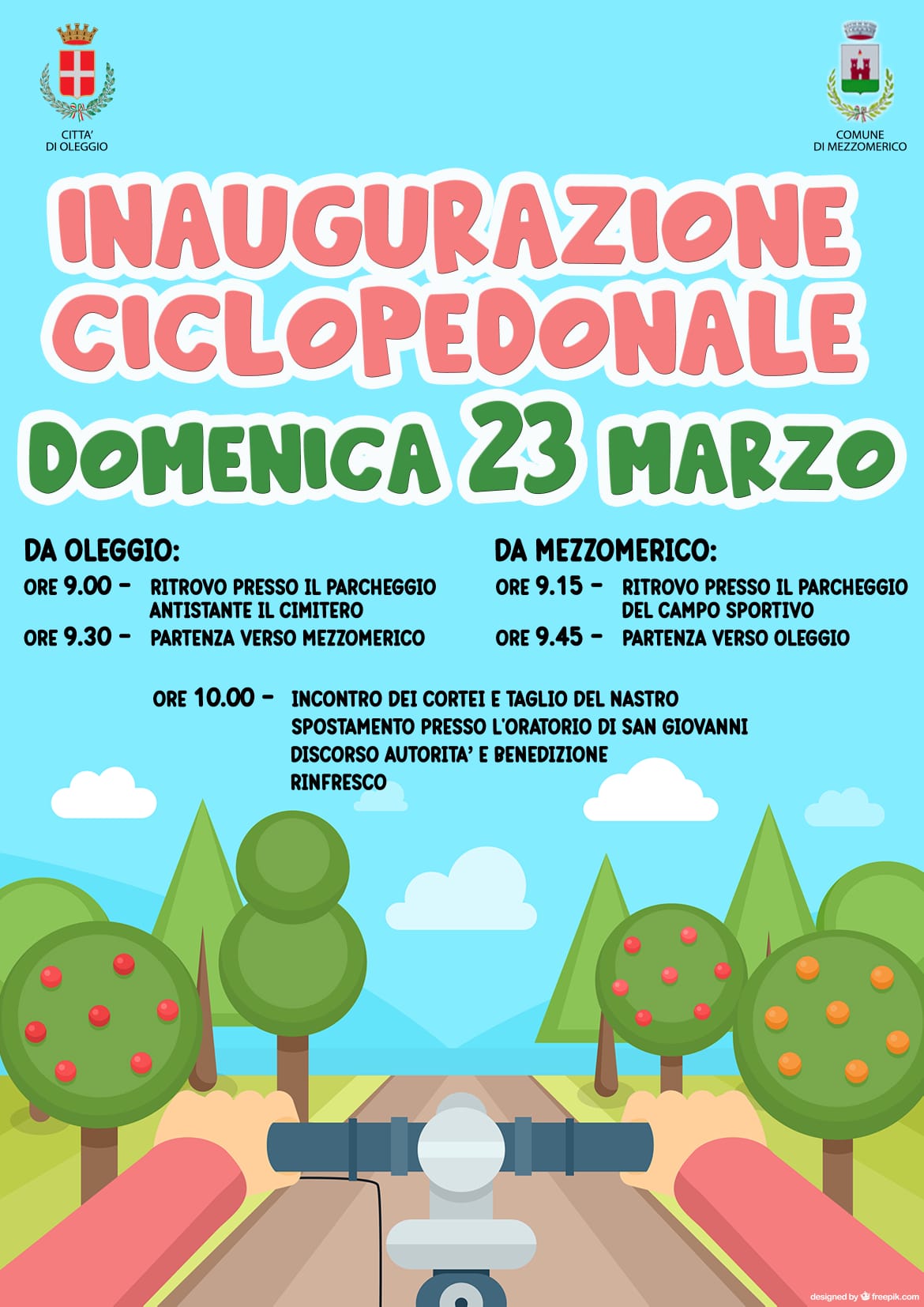 In data 23 marzo 2025 si terrà l'inaugurazione della pista ciclopedonale che collega Mezzomerico a Oleggio, siete tutti invitati, vi aspettiamo numerosi!
