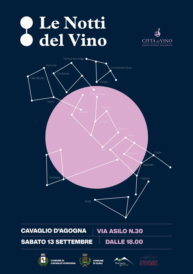 L’evento “Le Notti del Vino”, promosso dall’Associazione Nazionale Città del Vino con il coinvolgimento degli oltre 500 Comuni soci per la promozione della cultura del vino nelle sue molteplici declinazioni, toccherà il prossimo 13 settembre anche il Comune di Cavaglio d’Agogna.