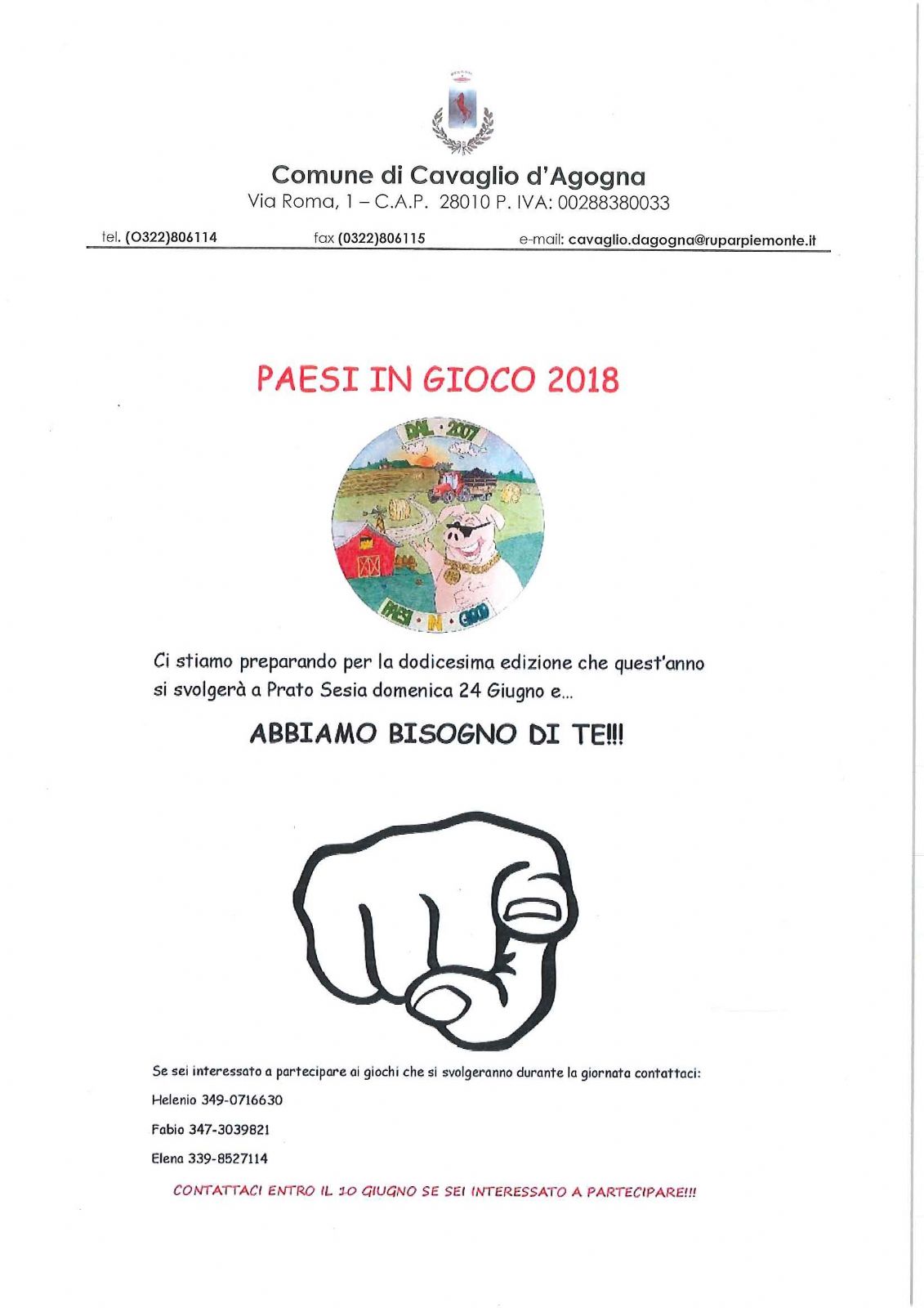 CI STIAMO PREPARANDO PER LA DODICESIMA EDIZIONE DI PAESI IN GIOCO CHE QUEST'ANNO SI SVOLGERA' A PRATO SESIA (NO) DOMENICA 24 GIUGNO.