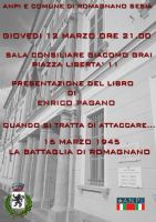 La pubblicazione che ne è scaturita, intitolata Quando si tratta di attaccare…16 marzo 1945 La battaglia di Romagnano, sarà presentata giovedì 12 marzo alle ore 21.00 presso la sala consiliare “Giacomo Grai” del comune di Romagnano Sesia, alla presenza dell’autore, con ingresso libero.