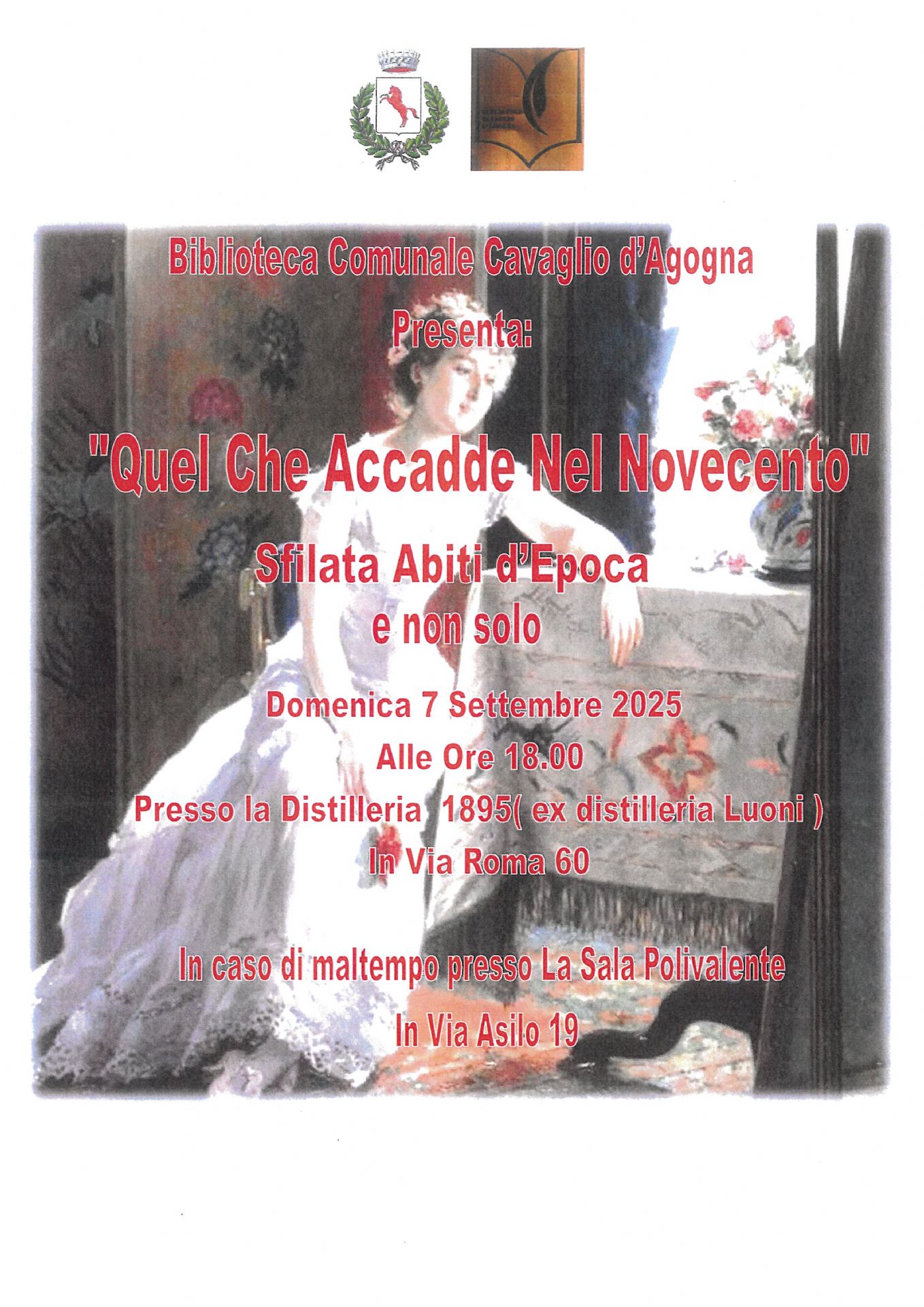 La Biblioteca Comunale di Cavaglio d'Agogna (No) presenta "Quel che accade nel Novecento" sfilata di abiti d'epoca e non solo.