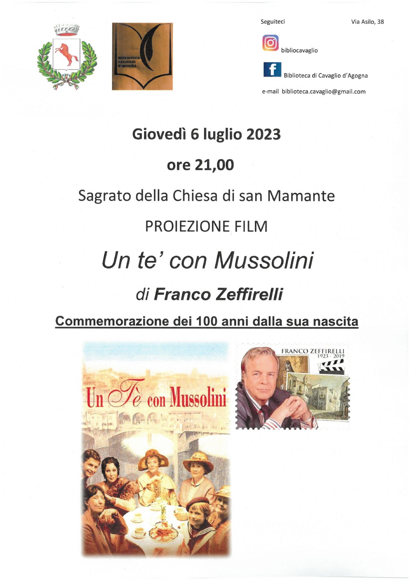 Siete tutti invitati alla proiezione del film "Un Tè con Mussolini" di Franco Zeffirelli in commemorazione dei 100 anni dalla sua nascita.