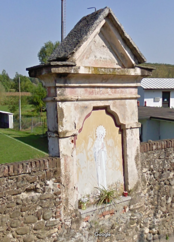 Edicola Via Cavaglietto, posizionata nella cinta muraria con tessitura in pietra a vista.