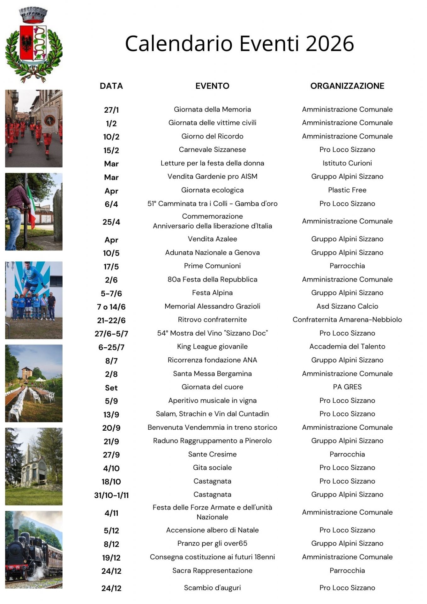 Il calendario potrà subire modifiche/integrazioni nel corso del 2026