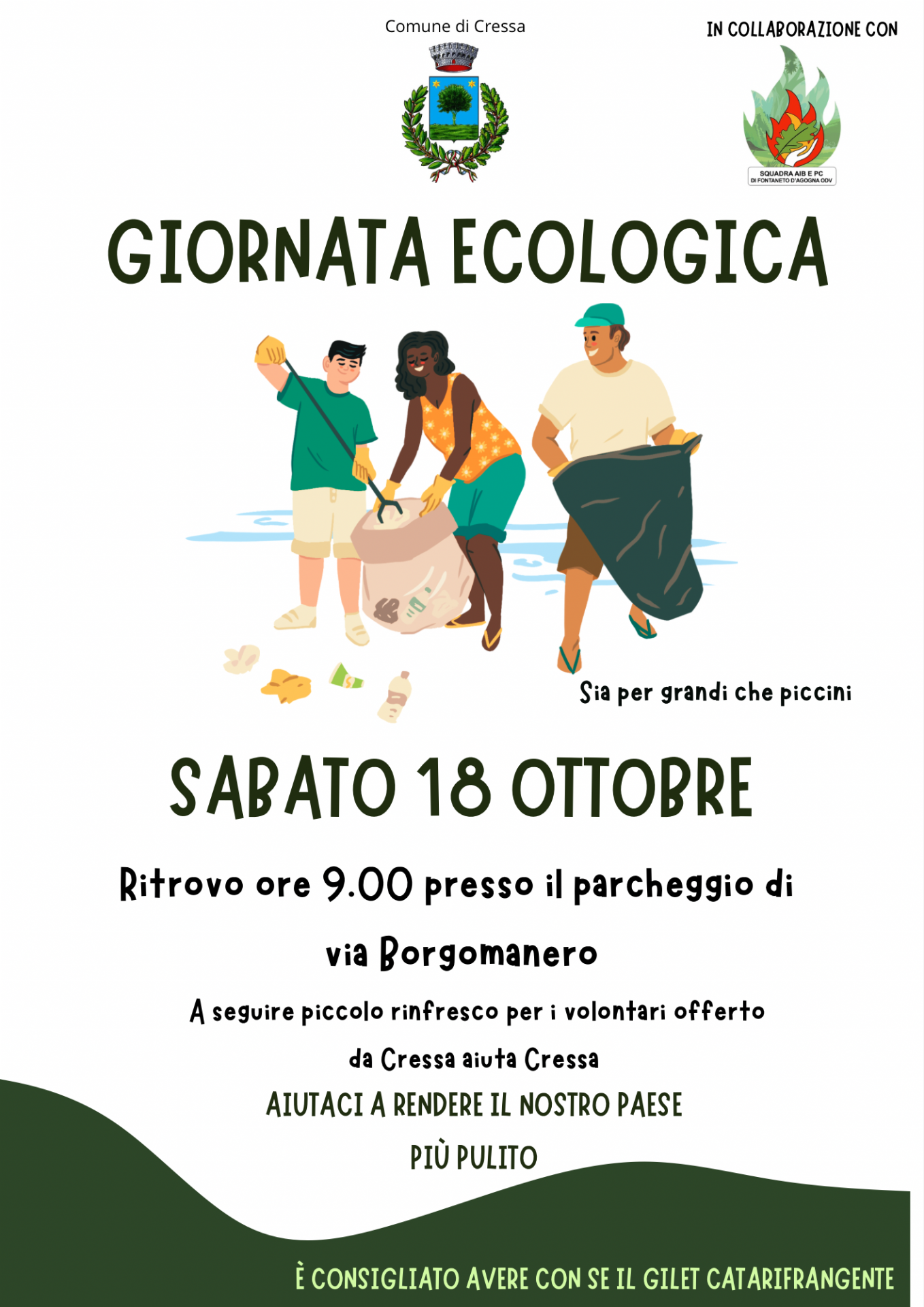 L'Amministrazione Comunale invita tutta la Cittadinanza, Grandi e Piccini, a partecipare alla "Giornata Ecologica" per rendere più pulito il Nostro "Paese" Sabato 18 ottobre 2025.