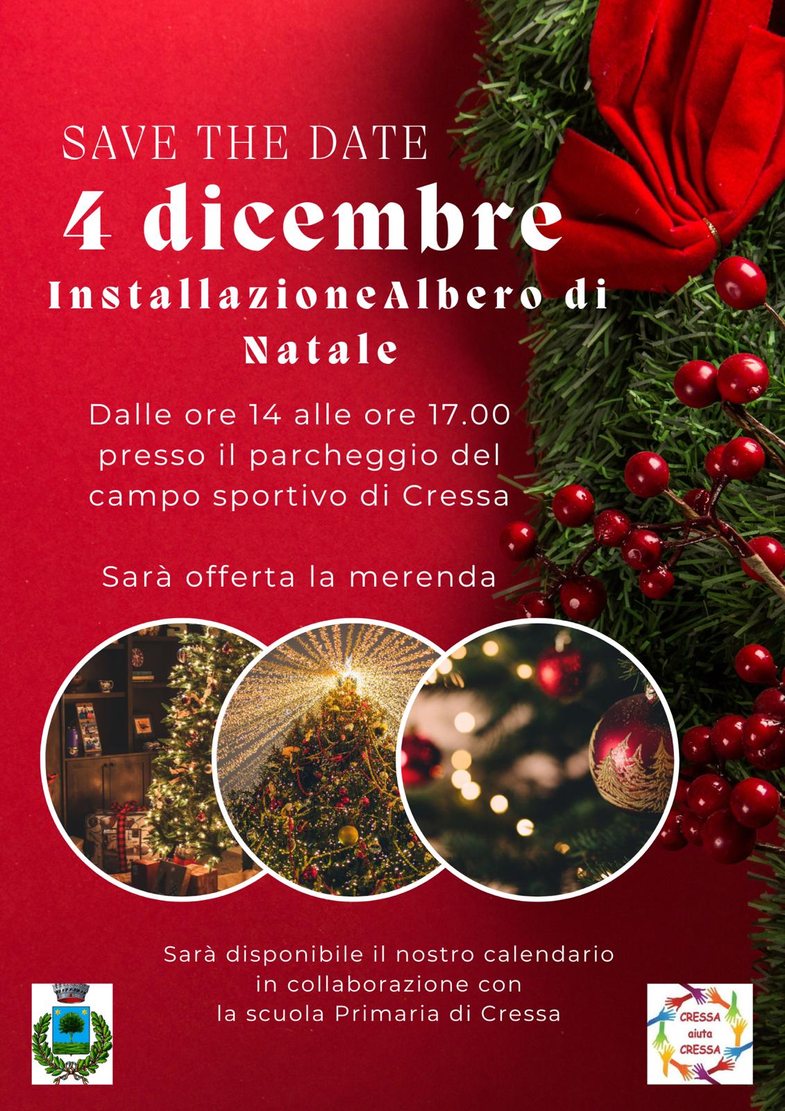 Esposizione e accensione dell'Albero di Natale presso il parcheggio del Campo Sportivo dalle ore 14 alle ore 17