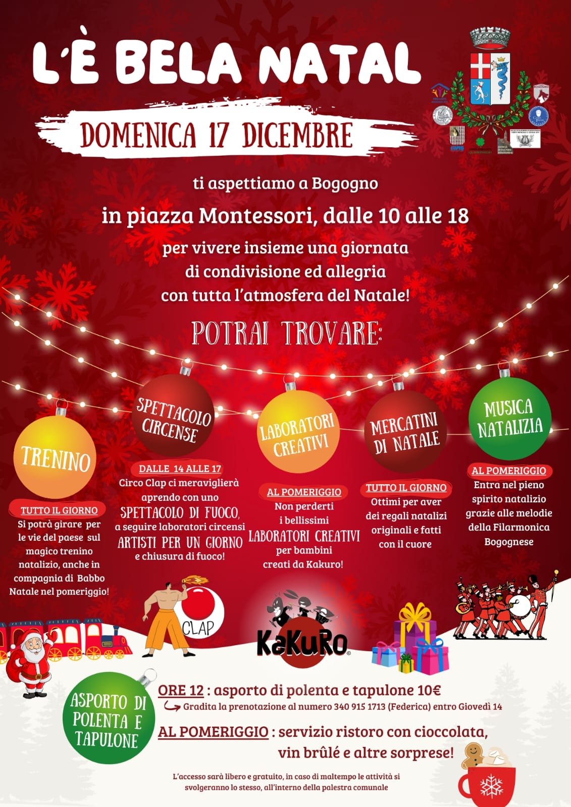 Tutte le associazioni, con il patrocinio del Comune di Bogogno, organizzano la festa di Natale, in piazza Montessori, domenica 17 dicembre dalle 10 alle 18.