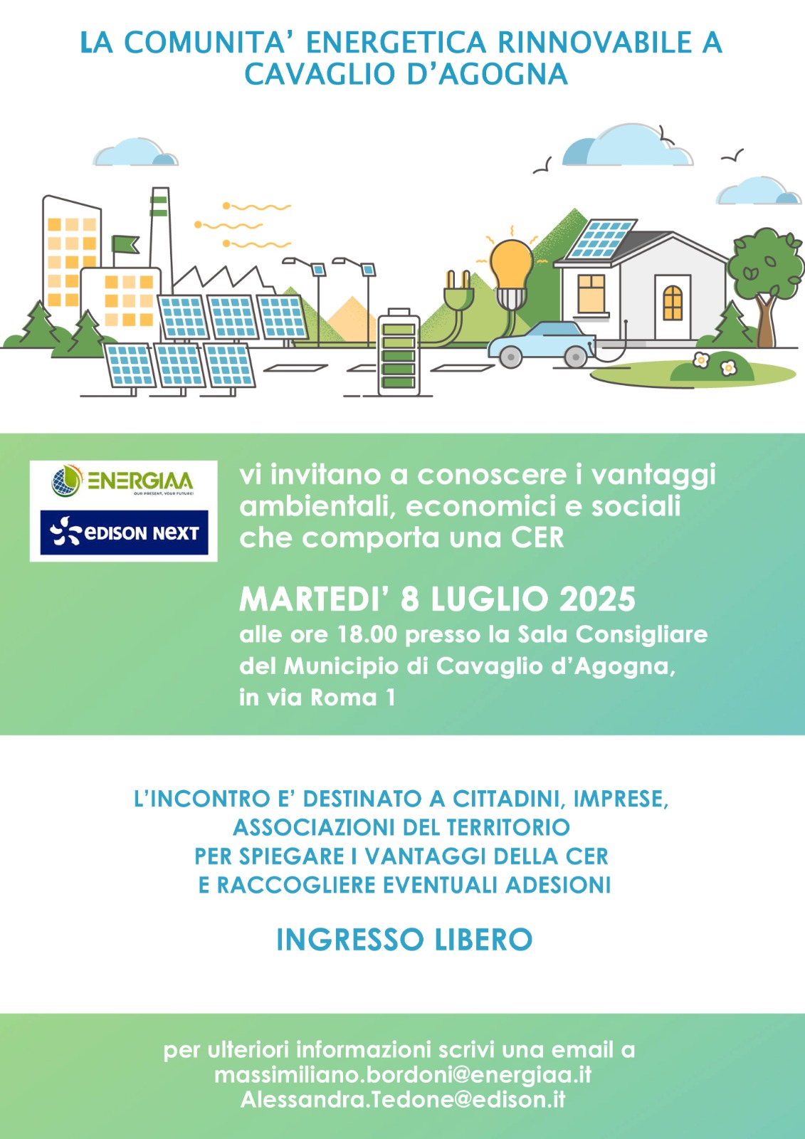 EnergiAA S.r.l. e EDISON NEXT vi invitano a conoscere i vantaggi ambientali, economici e sociali che comporta una Comunità Energetica Rinnovabile