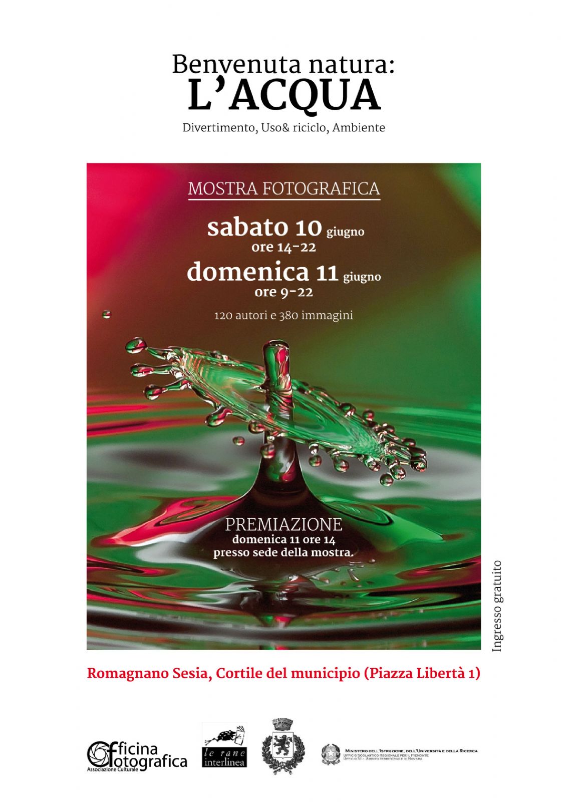 La 1° edizione del Concorso Fotografico organizzato da Officina Fotografica in collaborazione con il Comune di Romagnano Sesia - Assessorato all'Istruzione e con il patrocinio del'USP di Novara e Interlinea ha riscosso un grandissimo successo di partecipazione con oltre 350 immagini rappresentanti l’elemento che permette la vita sulla Terra: L’Acqua. "La giuria - spiegano dall'Associazione - ha avuto un gran lavoro da fare e selezionare i vincitori non è stato semplice vista anche la grande qualità del materiale proposto".