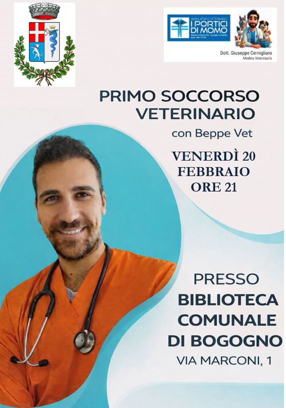 Venerdì 20 febbraio, alle 21, presso la Biblioteca, incontro con il Dott. Giuseppe Cernigliaro incontro informativo sul tema "Primo soccorso veterinario"