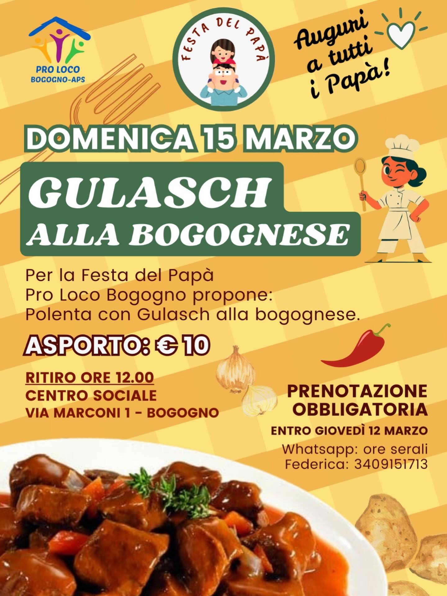 15 marzo, alle ore 12 presso Centro sociale, la Pro Loco celebra la Festa del Papà con