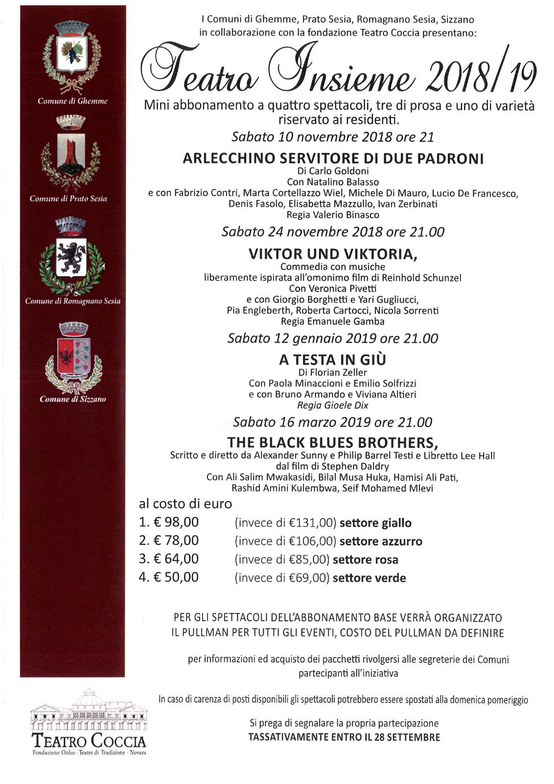 Teatro Insieme 2018/19 Mini abbonamento a quattro spettacoli
