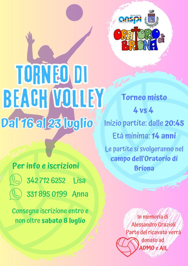 L'Oratorio di Briona organizza un Torneo di Beach Volley, dal 16 al 23 luglio, inizio partite ore 20.45.