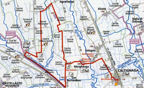 Il percorso, compreso fra la roggia Mora e il torrente Agogna, si può ritenere anche tratto di collegamento fra le sezioni occidentale e orientale del Sentiero Novara, che tocca Proh da una parte (tappa 1) e la cascina Codemonte dall'altra (tappa 10), in territorio camerese, ma a breve distanza da Caltignaga.