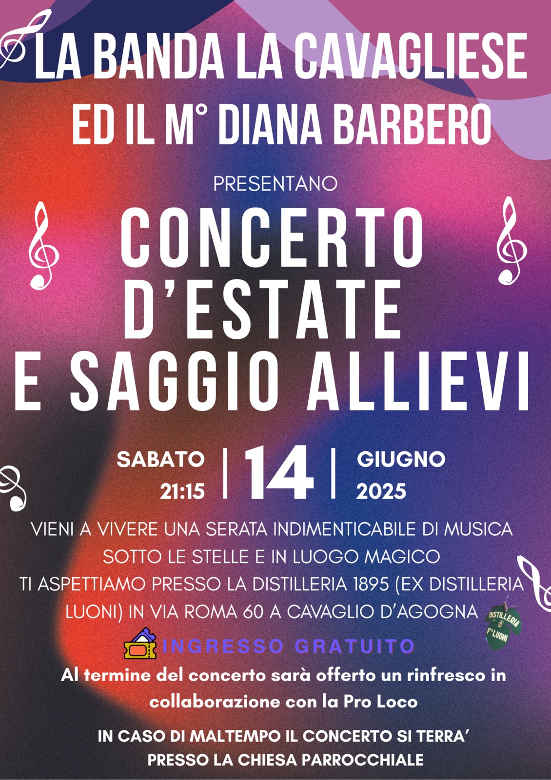 La Banda Musicale "La Cavagliese" e il maestro Diana Barbero presentano il Concerto d'estate e saggio allievi.