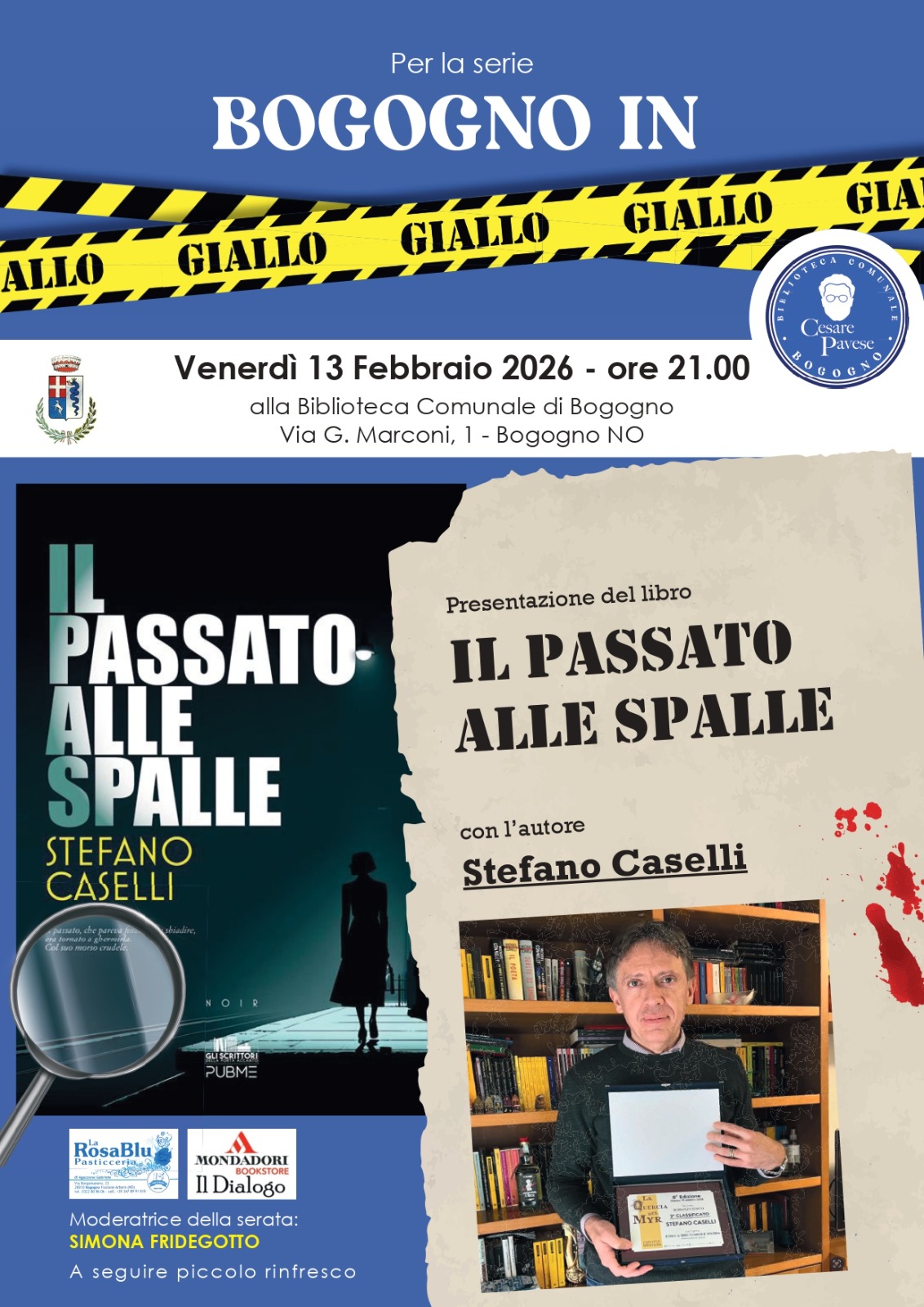 Venerdì 13 febbraio, ore 21, presso la Biblioteca comunale incontro con l'autore Stefano Caselli che presenterà "Il passato alle spalle". Moderatrice Simona Fridegotto. Serata in collaborazione con Pasticceria La Rosa Blu e Mondadori Borgomanero.