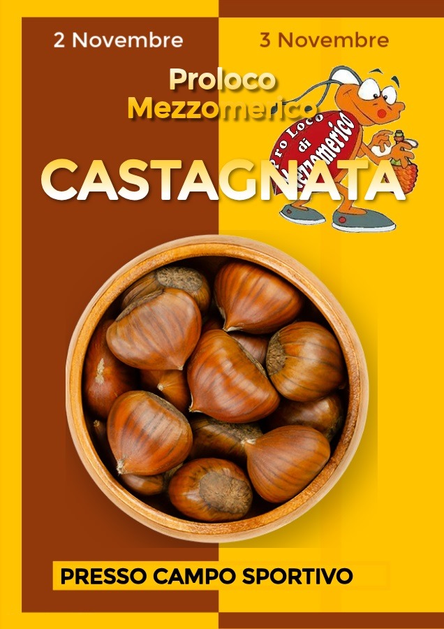Nei giorni sabato 2 e domenica 3 novembre 2024, a partire dalle ore 14.30, presso l'area del Campo Sportivo, si svolgerà la tradizionale Castagnata a cura della Pro Loco di Mezzomerico.