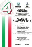 Domenica 8 novembre. Alle 9.30 raduno in piazza libertà e partenza del corteo e omaggio ai monumenti di piazza XVI Marzo e dei Caduti di piazza Libertà. Alle ore 10 saluto del Sindaco e intervento degli studenti dell’Istituto Comprensivo “G. Curioni”. Alle 10.30 messa nella chiesa parrocchiale di S. Silvano. Parteciperà alla manifestazione la Banda Musicale Cittadina. La cittadinanza è invitata.