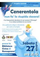 “Cenerentola nun fa’ la stupida stasera!”. Spettacolo allegro e divertente per tutta la famiglia. In scena presso la Biblioteca Civica “C. Dionisotti” di Romagnano Sesia i ragazzi e gli adulti del progetto teatrale Play Valduggia. L’appuntamento è per sabato 27 Giugno ore 21.15 con ingresso libero. Il progetto è stato curato di Andrea Piazza grazie a Valentina Preite e la Pro Loco di Valduggia. Lo spettacolo è organizzato in collaborazione con il Comune di Romagnano