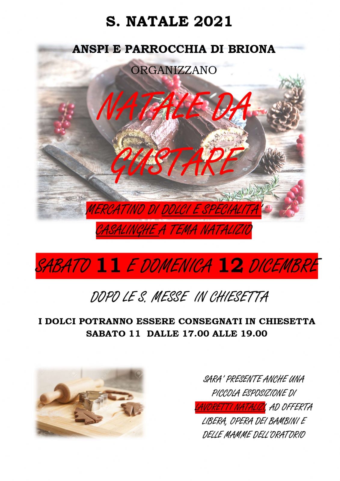 ANSPI e Parrocchia di Briona organizzano "Natale da gustare", mercatino di dolci e specialità casalinghe a tema natalizio.