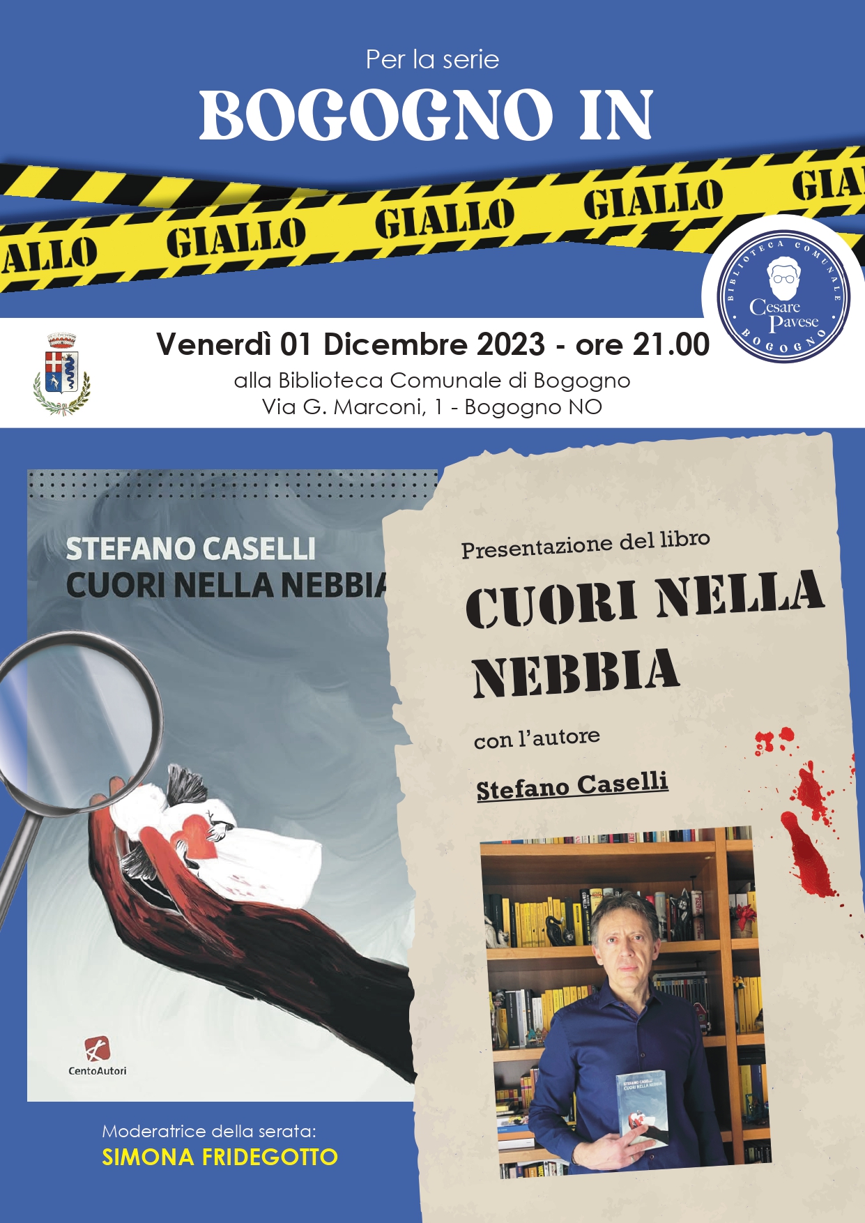 Venerdì, 1 dicembre, ore 21.00 nell'ambito della rassegna "Bogogno in giallo", sarà presente Stefano Caselli che presenterà il suo romanzo "Cuori nella nebbia". Moderatrice della serata: Simona Fridegotto