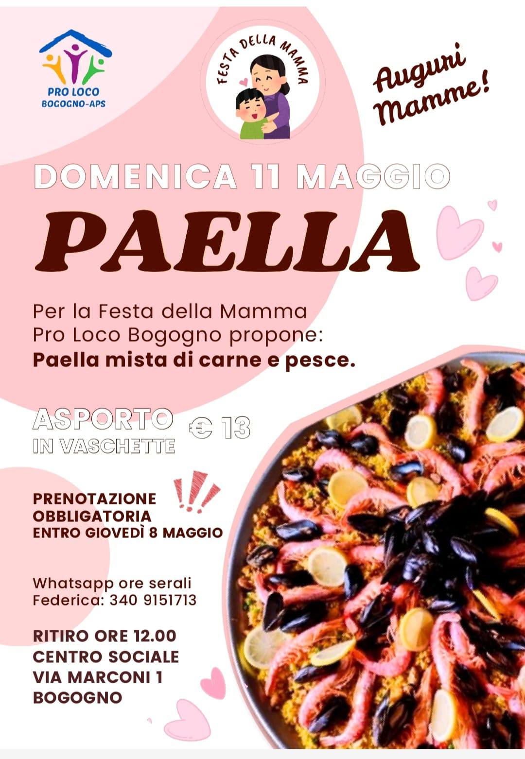Pro Loco Bogogno: festa della mamma - Paella d'asporto