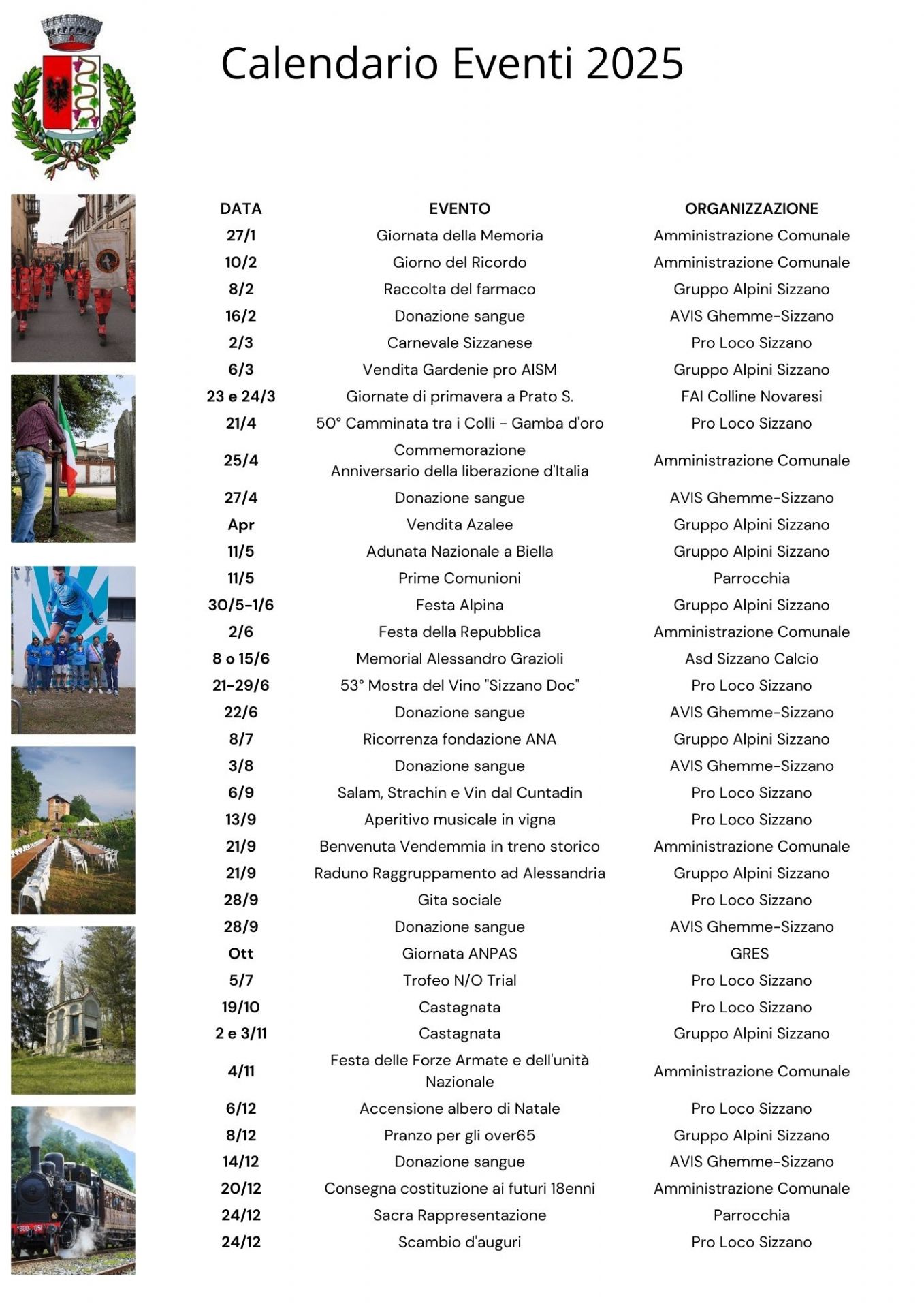 Il calendario delle manifestazioni 2025 redatto dopo l'annuale incontro con le associazioni Sizzanesi.
