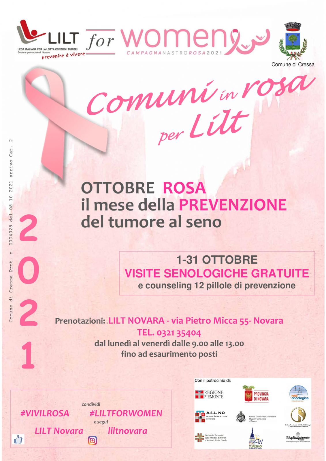 Il Comune di Cressa ha scelto anche quest'anno di aderire alla "Campagna Nastro Rosa" promossa dalla LILT for Women per la prevenzione del tumore al seno, illuminando di rosa i monumenti più significativi del nostro Comune nel mese di Ottobre.