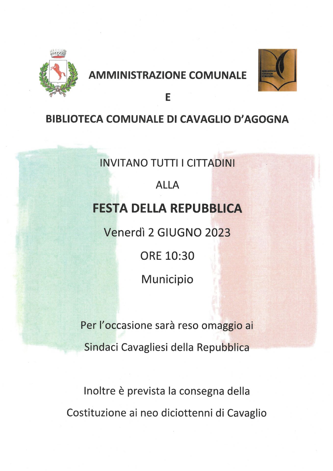 FESTA DELLA REPUBBLICA - Venerdì 2 giugno 2023 alle ore 10.30