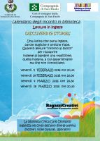 Proseguono gli appuntamenti in lingua inglese in biblioteca a Romagnano con ingresso libero e gratuito. Il prossimo appuntamento è per venerdì 4 marzo alle ore 20,30, mentre quello successivo è per venerdì 18 marzo alle 20,30. Le letture sono organizzate dall’Assessorato all’Istruzione con la collaborazione dell’associazione di promozione sociale Ragazzi Creativi