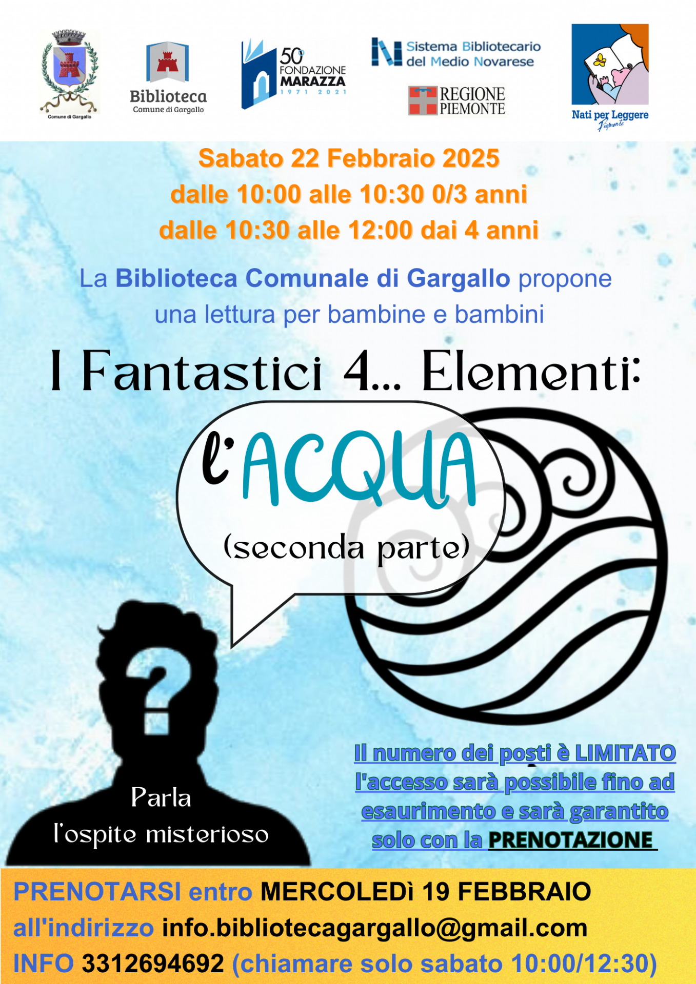 Prenotarsi entro mercoledì 19 febbraio all'indirizzo info.bibliotecagargallo@gmail.com