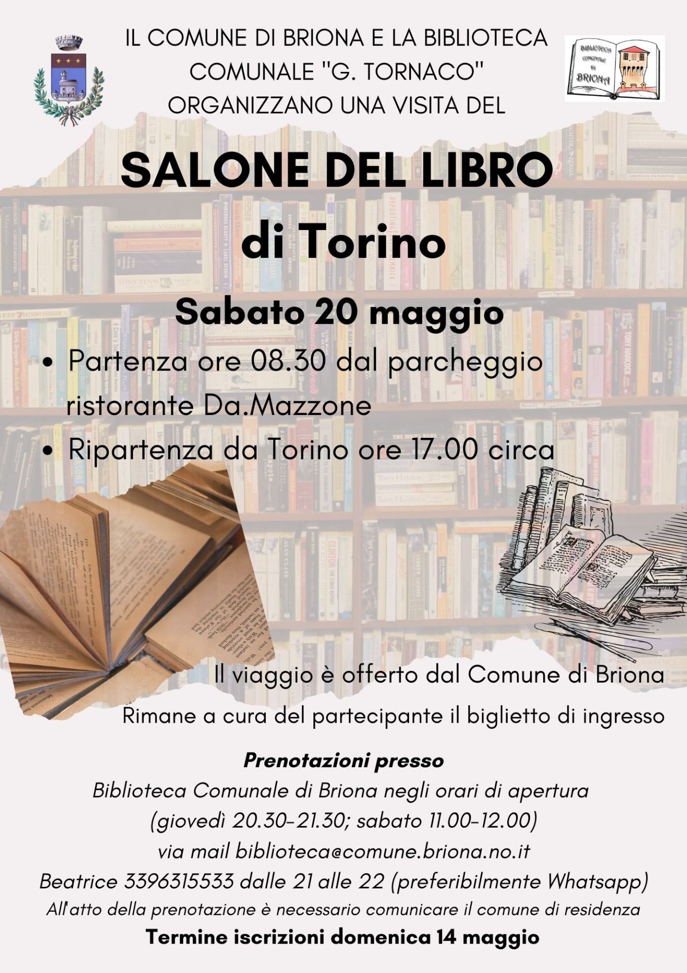 Il Comune di Briona e la Biblioteca di Briona “Giancarlo Tornaco” organizzano un viaggio presso il Salone del Libro di Torino
