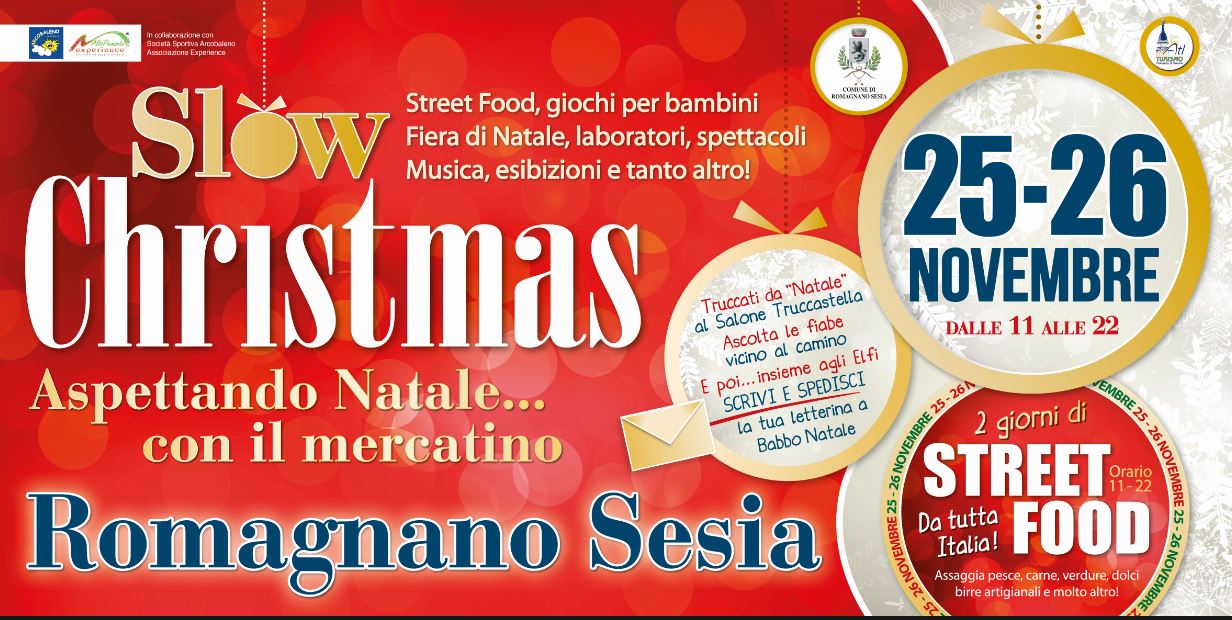 Sabato 25 novembre e Domenica 26 novembre a Romagnano Sesia Slow Christmas e Street Food "Assaggia Italia". Saranno presenti una ventina di truck food provenienti da diverse regioni italiane e anche qualche sorpresa dall'estero. Ci saranno hobbisti, bancarelle e tanti gli eventi, esibizioni e laboratori GRATUITI.