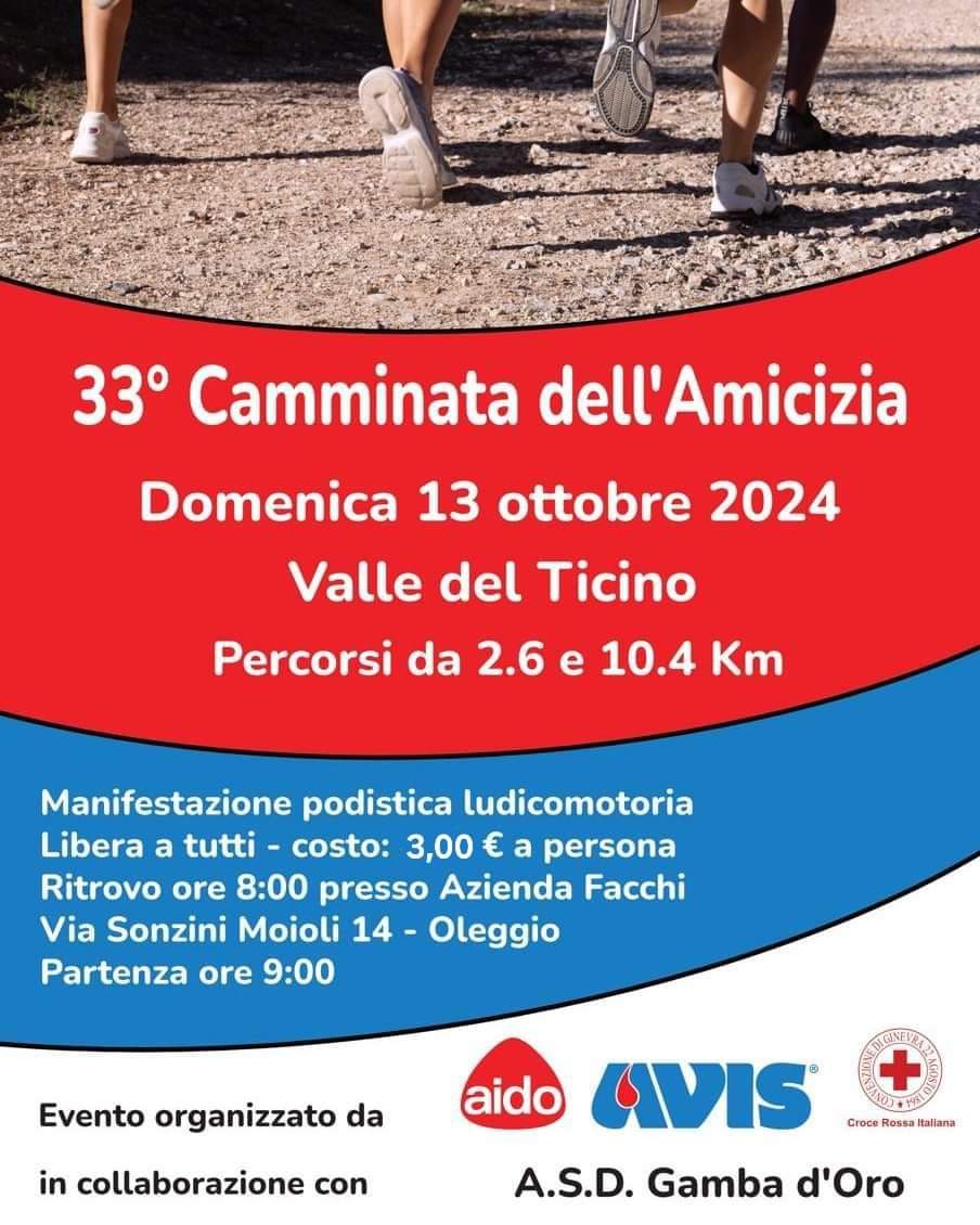 33° Camminata dell'Amicizia in data 13 Ottobre per celebrare i valori della solidarietà e del volontariato.