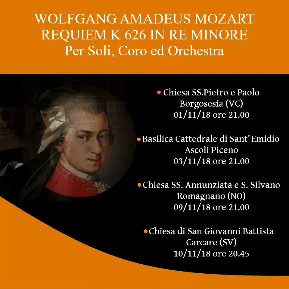 Venerdì 9 Novembre alle ore 21 in chiesa SS. Annunziata e S Silvano si terrà “REQUIEM IN RE MINORE K626” di Wolfgang Amadeus Mozart per soli, coro e orchestra.