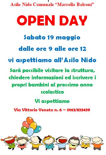 Sabato 19 maggio dalle ore 9 alle ore 12 vi aspettiamo all'Asilo Nido. Sarà possibile visitare la struttura, chiedere informazioni ed iscrivere i propri bambini al prossimo anno scoalstico. Vi aspettiamo!!!