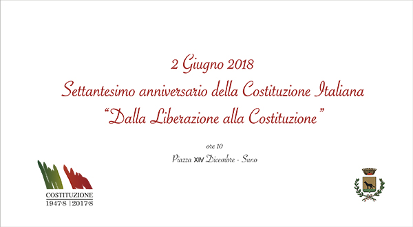 Italiana, il Comune di Suno renderà omaggio alla Carta fondamentale il 2 giugno 2018, presso il Palazzo