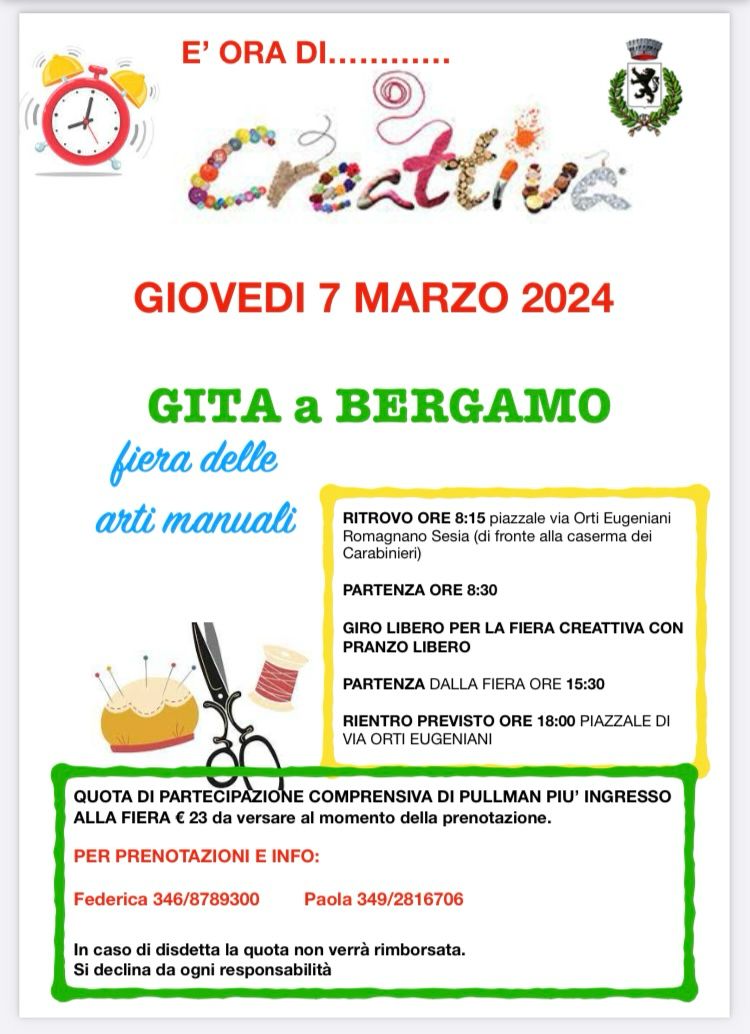 Si organizza per la giornata di giovedì 7 marzo la gita a Bergamo per la fiera "Creattiva".