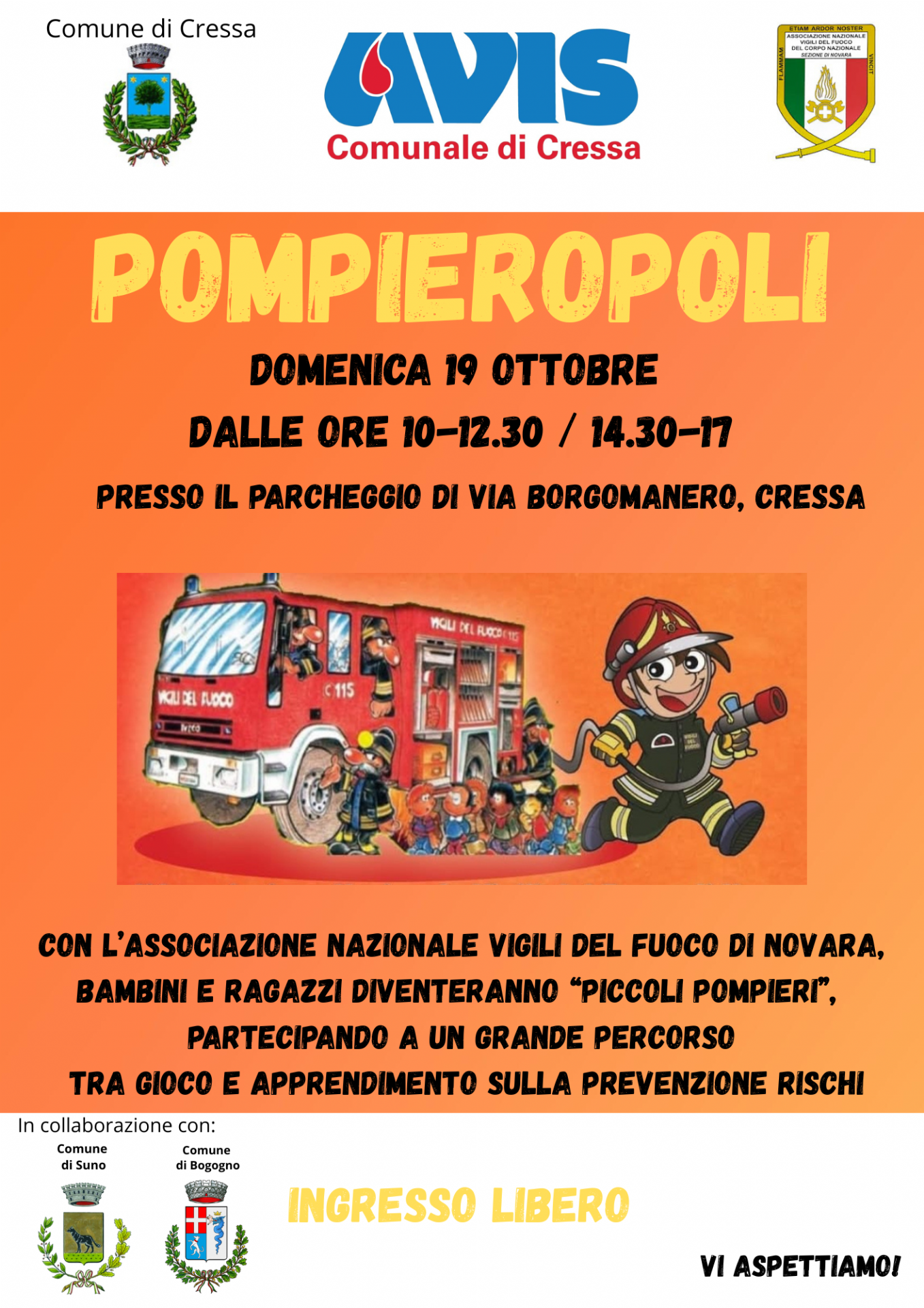 con l'Associazione Nazionale Vigili del Fuoco di Novara, bambini e ragazzi diventeranno "Piccoli pompieri"