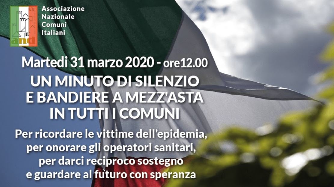 UN MINUTO DI SILENZIO E BANDIERE A MEZZ'ASTA - MARTEDì 31 Marzo 2020 - SINDACO E INTERA CITTADINANZA NELLE PROPRIE ABITAZIONI