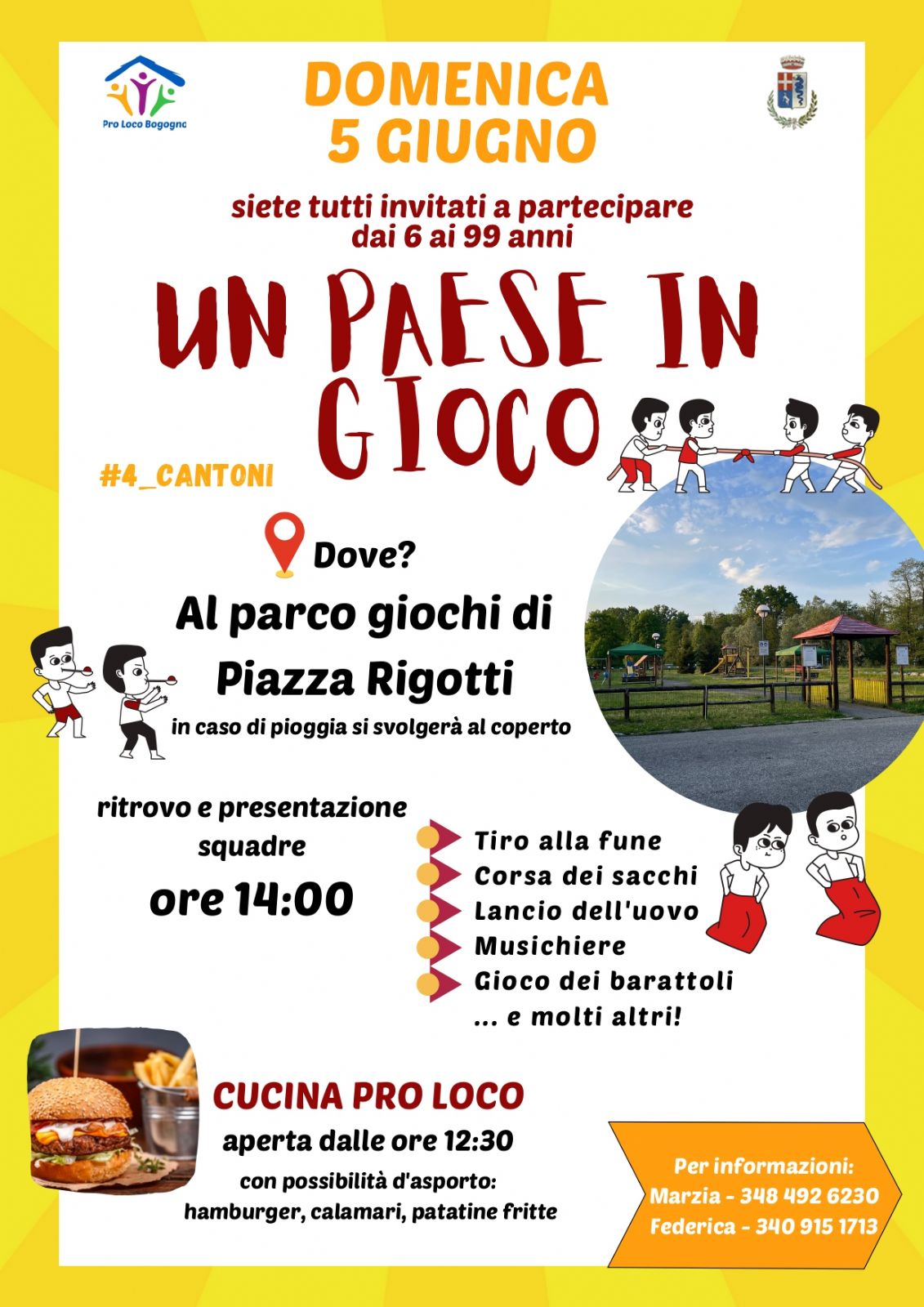 La Pro Loco di Bogogno organizza in data 5 giugno 2022 la manifestazione "Un paese in gioco", presso il parco giochi di Piazza Rigotti, dalle ore 14.00.